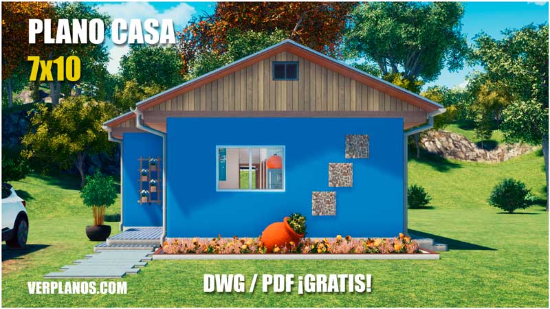 El diseño cuenta con unas medidas en planta de 7 metros de frente por 10 metros de largo, aproximadamente.